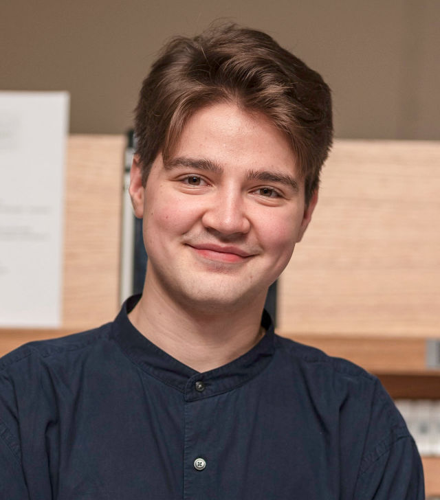 Aleksandr Volkov absolvierte 2022 mit Auszeichnung das Michail-Glinka-Chorcollege in St. Petersburg (Orgel, Klavier sowie Gesangs- und Chorleitung). Seit 2022 studiert er Orgel an der Universität der Künste Berlin – zunächst bei Paolo Crivellaro und Pier Damiano Peretti, derzeit in der Klasse von Henry Fairs. Zusätzlich studiert er seit 2025 Cembalo bei Avinoam Shalev. Bühnenerfahrung sammelte er als Sänger in Prokofjews „Krieg und Frieden“ am Mariinski-Theater. Volkov ist Preisträger mehrerer Wettbewerbe, u.a. 1. Preis „Vivat Musica“ (Moskau) und 2. Preis beim Alexander-Goedicke-Wettbewerb. Konzerttätigkeit als Solist und Kantatenorganist in Deutschland, Russland, Finnland und Slowenien – mit stilistischer Neugier.