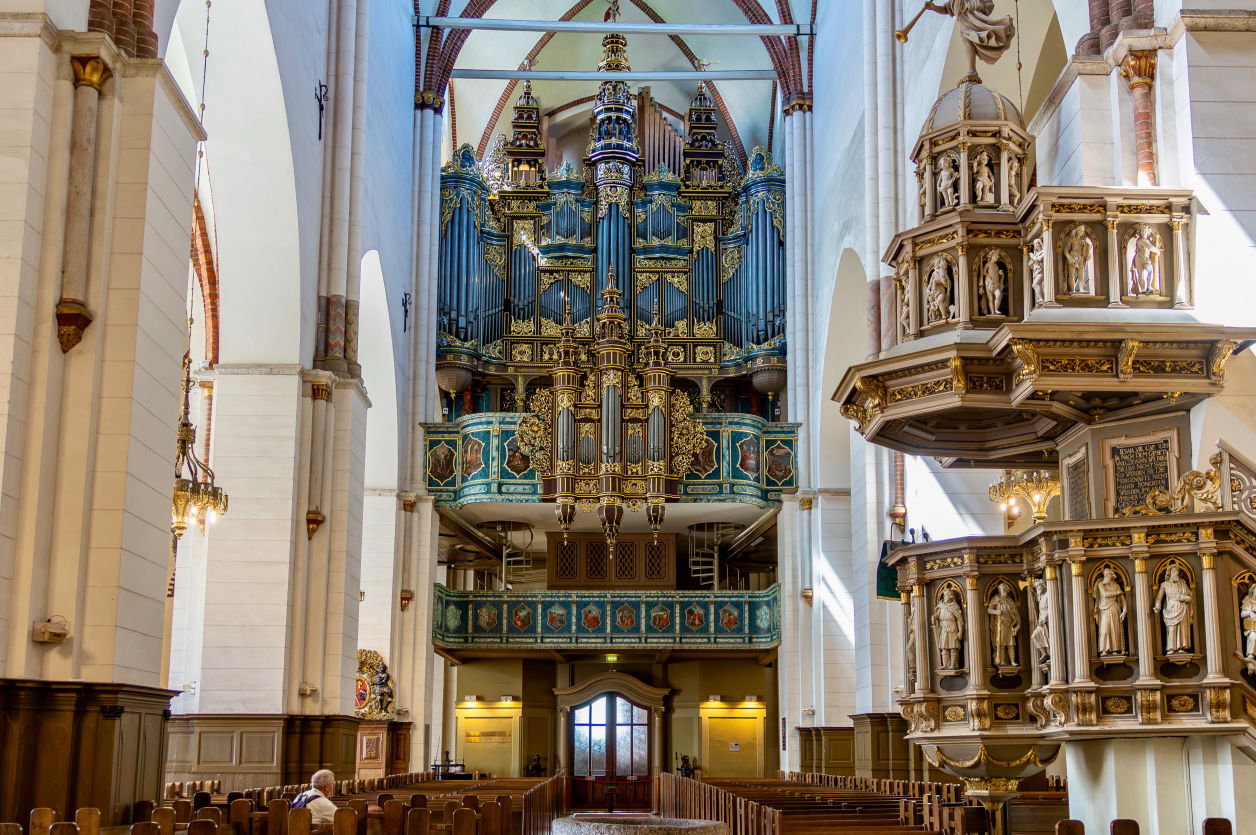 Es wurde am 31. Januar 1884 eingeweiht und war zu diesem Zeitpunkt das größte der Welt. Dabei blieb der üppige frühbarocke Prospekt des Vorgängerinstrumentes erhalten, dessen Mittelteil mit den drei krönenden Türmchen und dem Rückpositiv Jakob Raab aus Lübeck im Jahre 1601 fertiggestellt hatte.
